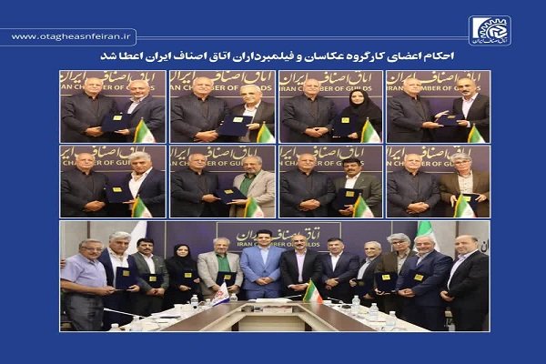 مراسم اعطای احکام اعضای کارگروه عکاسان و فیلمبرداران اتاق اصناف ایران با حضور مجتبی صفایی، رئیس اتاق اصناف ایران، قاسم نوده فراهانی، نماینده وزیر صمت در هیأت رئیسه و نائب رئیس اتاق اصناف ایران، کریم محمدیان دبیر وعضو هیأت رئیسه و همچنین احسان سقائی، سرپرست دبیرکل اتاق اصناف ایران برگزار شد که طی آن شهاب ناصری به عنوان رئیس و رحمت قاسمی، حمیدرضا برفر، محمد رضا محمدی، محمدرضا دوامی، محمد حدادی، حجت اله عنابی میلانی، فرامرز نادری و مریم منوری به عنوان اعضای این کارگروه، احکام خود را دریافت کردند.
